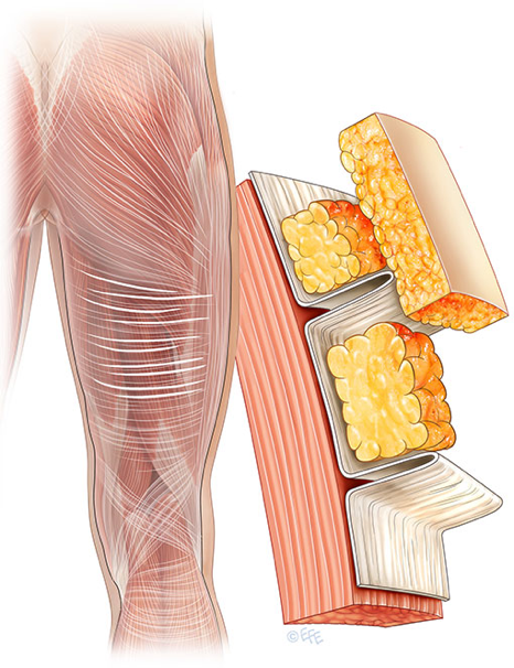 Fascia is a dense, irregular connective tissue throughout our body that surrounds and connects every muscle, bone, organ and joint. It forms continuity throughout the entire body that is important in movement organization and posture (Schleip, 2003). It is made up primarily of collagen that forms sheets or bands beneath the skin to attach, stabilize, enclose and separate muscles and internal organs.